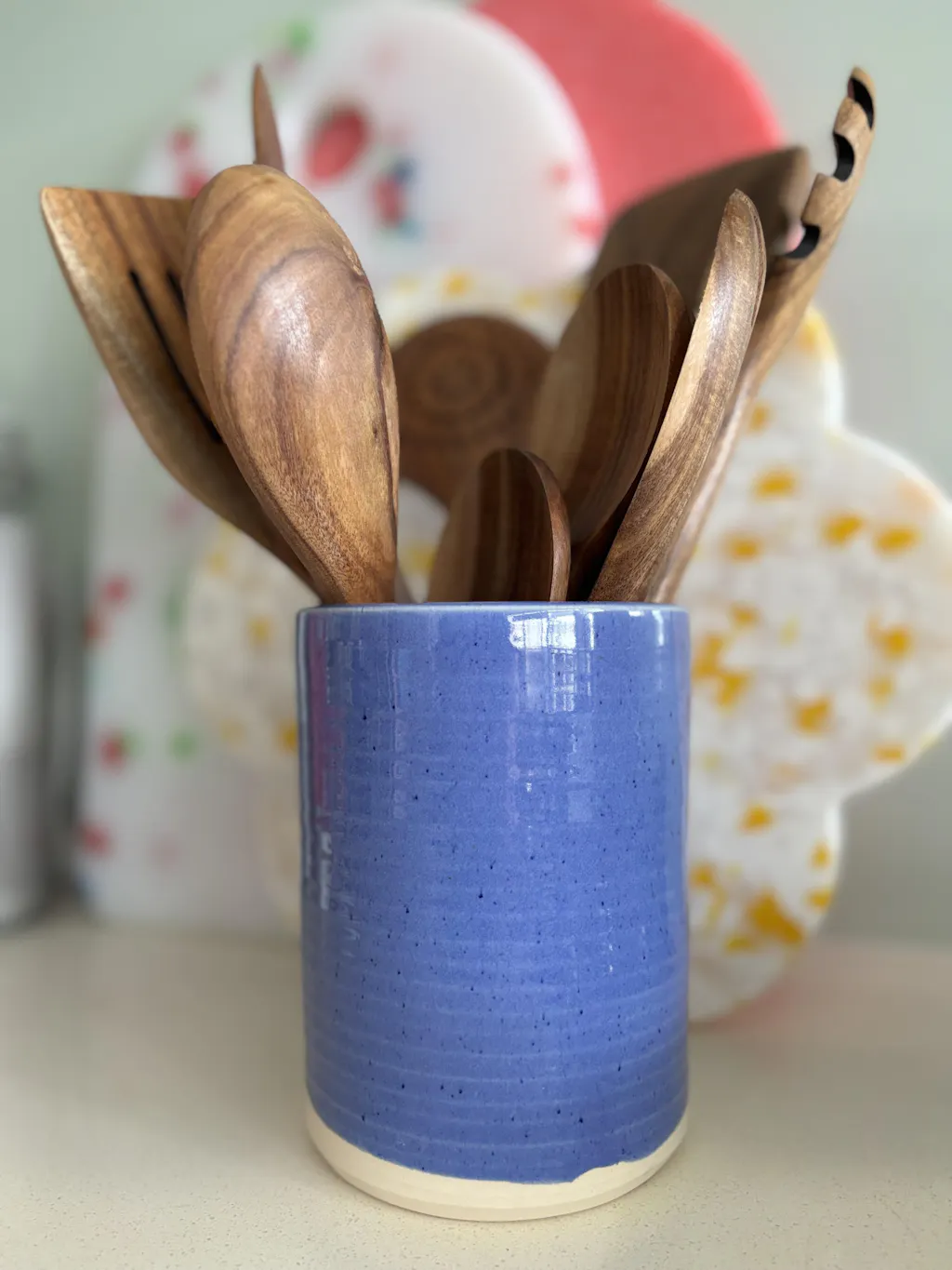 Lovely blue utensil holder from Adele Macer to add to my collection of beautiful items that I have bought from this maker. This piece is the perfect size for my wooden utensils and iis such a lovely colour. As always, it arrived well packaged and promptly. Thank you Adele!